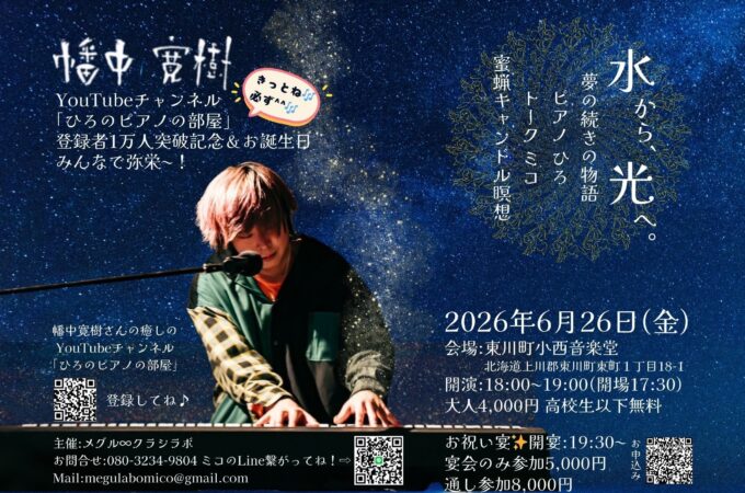 YouTubeチャンネル「ひろのピアノの部屋」登録者1万人突破記念&ひろお誕生日をみんなで祝おう! 18:00~19:00(開場17:30)@北海道/...