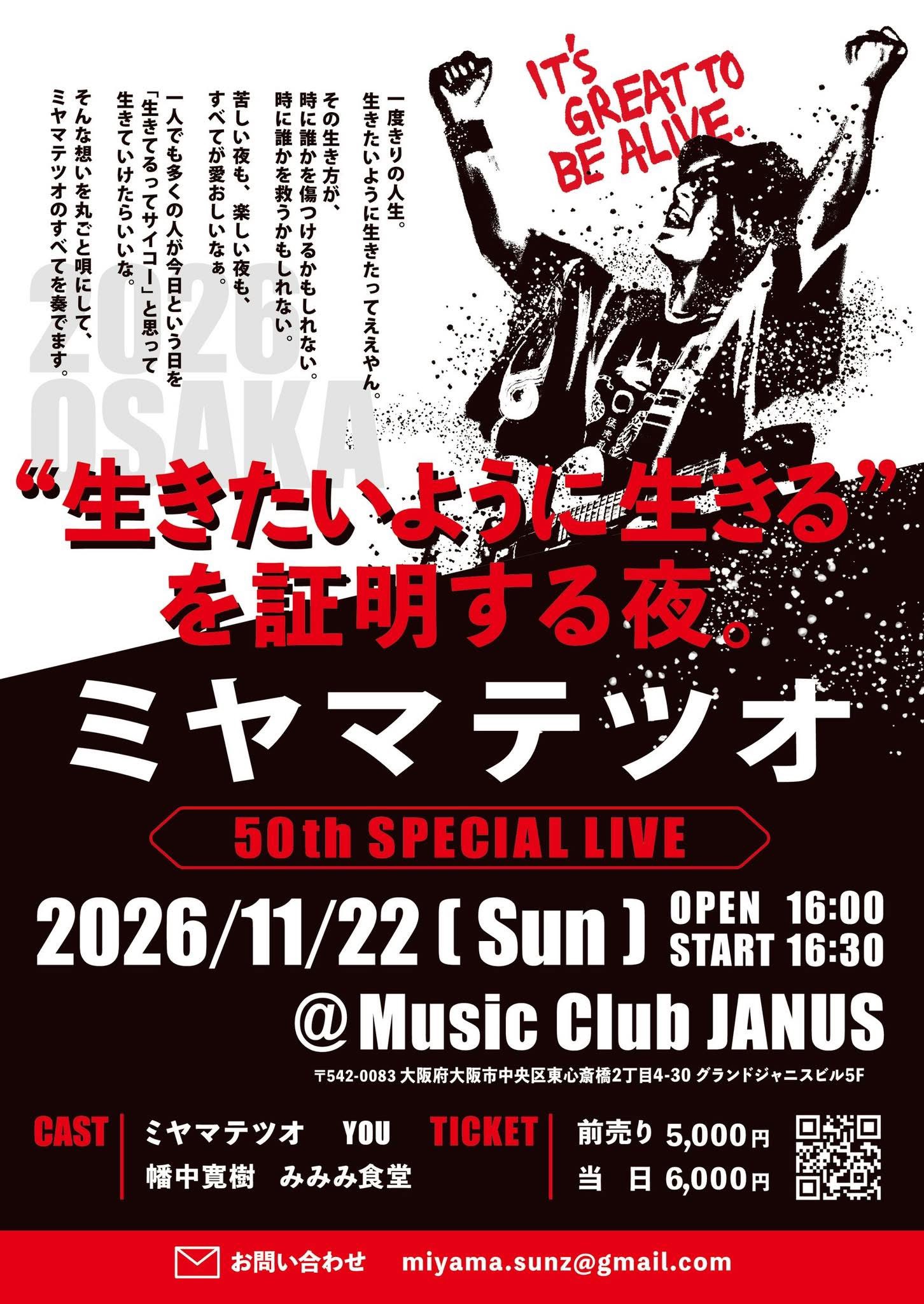 11月22日(日)@大阪『ミヤマテツオ 50th SPECIAL LIVE』